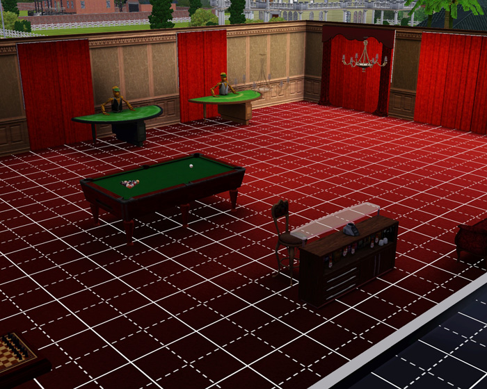 部屋の中央の大きなテーブルはビリヤード台ですが、ルーレットテーブルがアイテムとして無いので、それの代わりとしておきました。