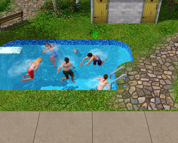シム達は新しいものが大好きなので、設置されたばかりのプールにどんどん集まってきます!!