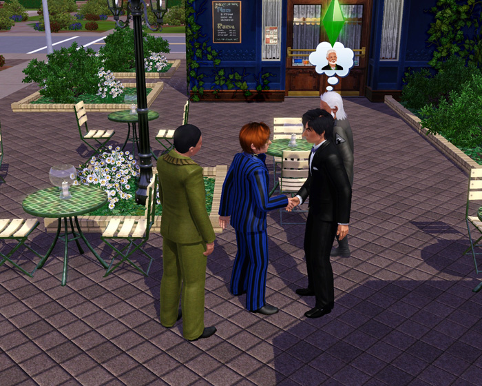 この仕組みを利用して、仕事着で通りかかったシムがプールに入ると→水着→プールから出ると着替えイベントが発動してデフォルトの普段着に戻るハズなのです…。