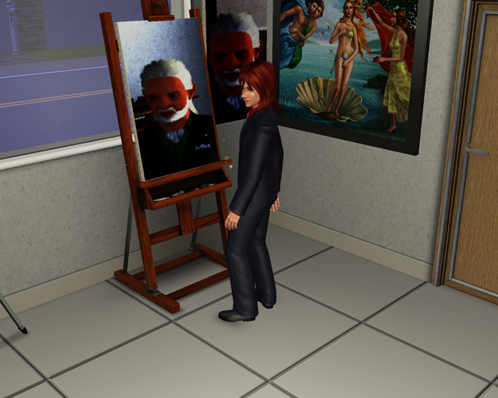 この後、店長はキャンバスに向かい、会長の肖像画を描くというコマンドを実行。