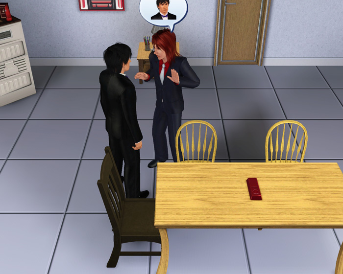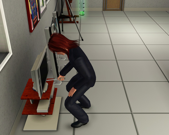 シムは勤務時間から勤務終了後はお風呂などの着替えイベントが発動するまでずっとそのままの服でいます。