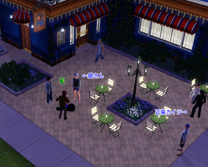 右下のグレーの車が村上ですが、すでに別のシムが新アイテムに興味津々で集まっています…!