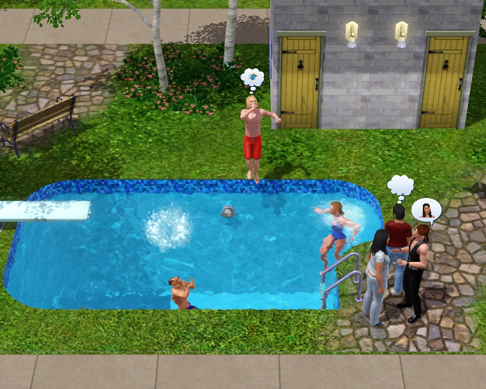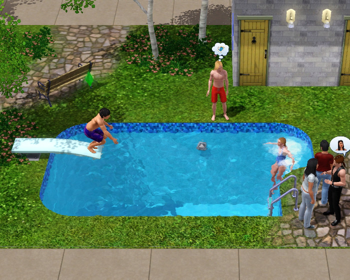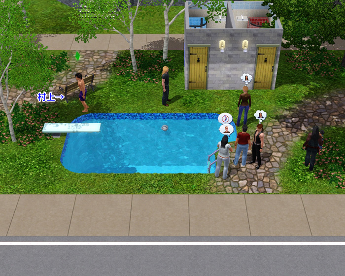 シム達は新しいものが大好きなので、設置されたばかりのプールにどんどん集まってきます!!